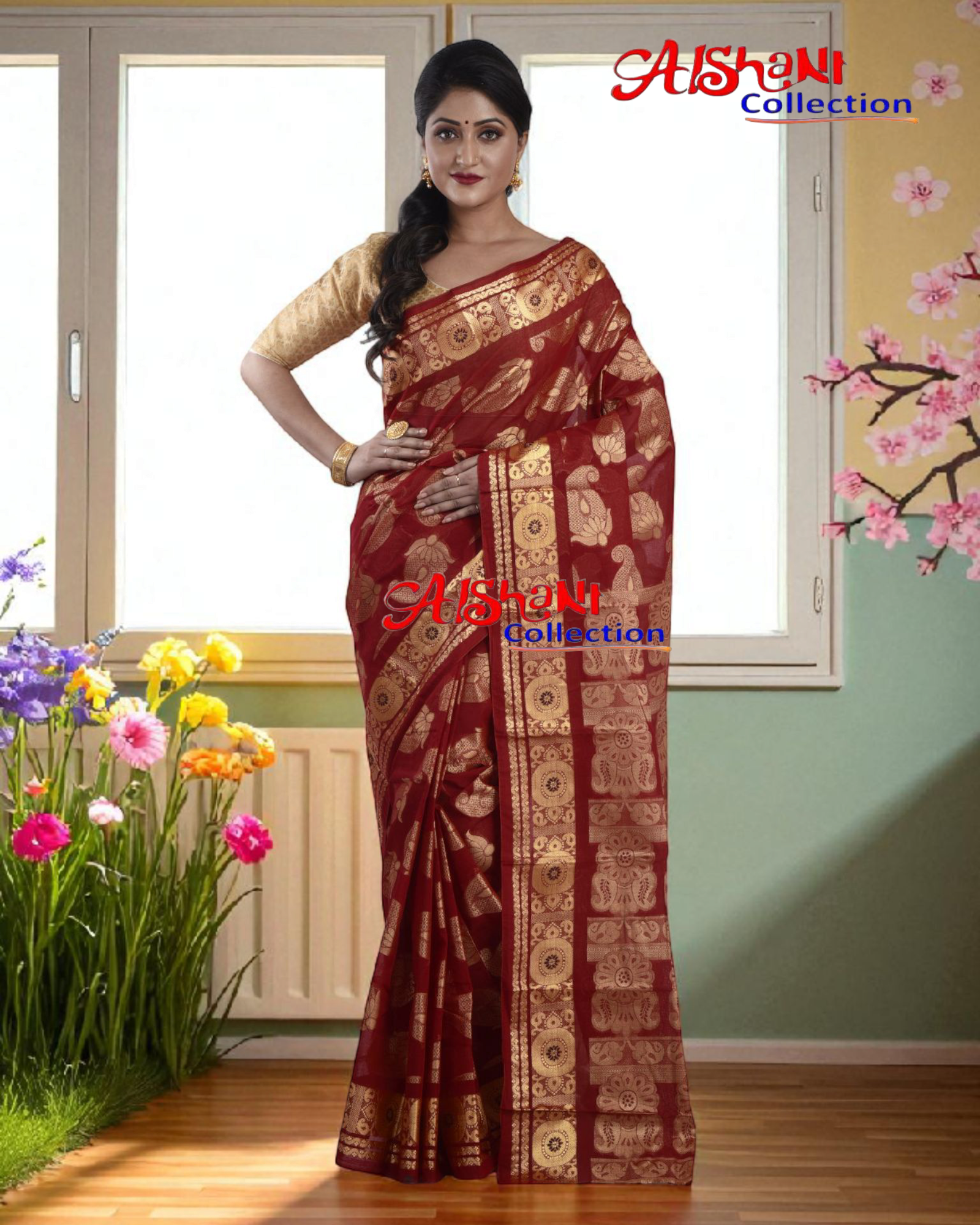 ✨ Cotton Zari & Minakari Saree – Lightweight Elegance in Traditional Ethnicwear (Maroon)