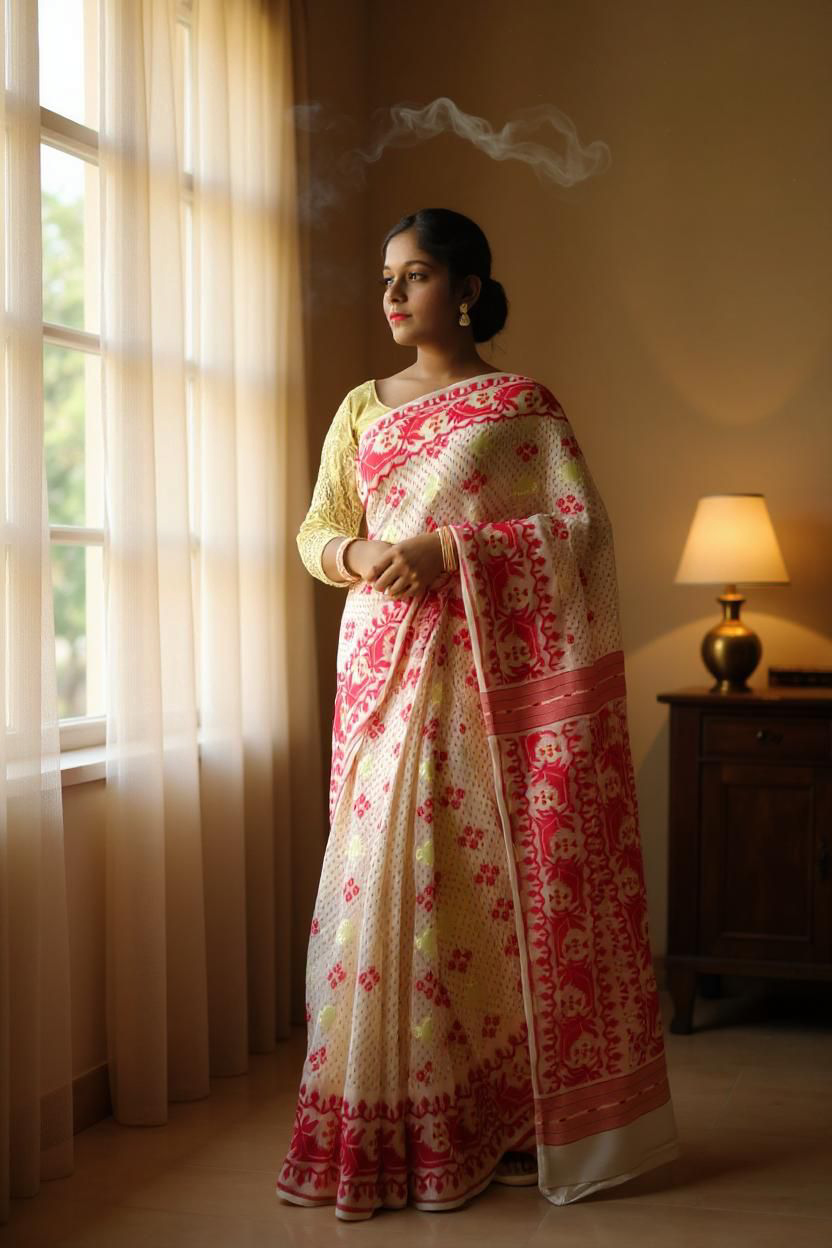 • Fabric Type: Premium handwoven Dhakai Jamdani