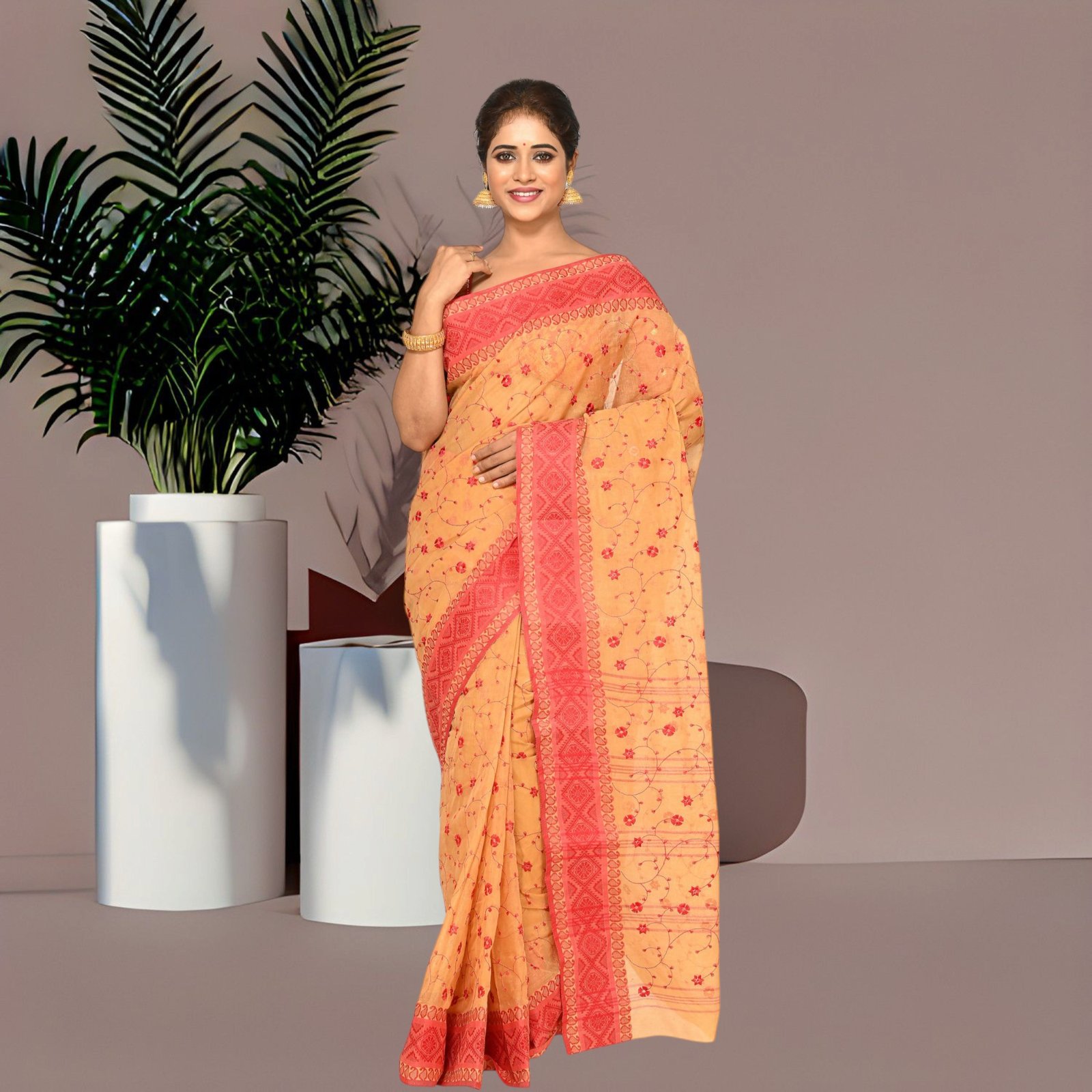 This saree comes without a blouse piece, staying true to the heritage style of traditional Tant weaves. Ideal for women who prefer simple elegance, airy comfort, and timeless handloom artistry.