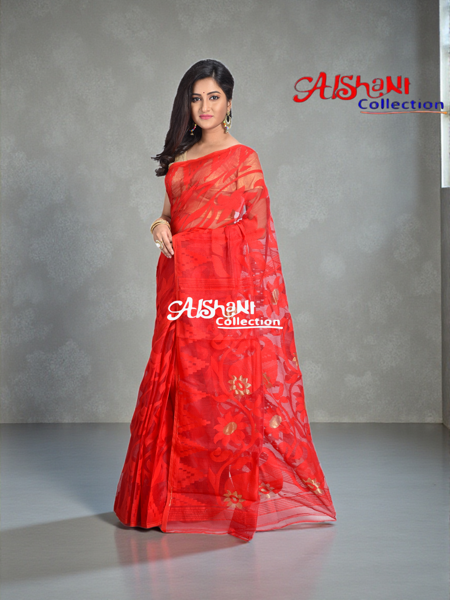 • Authentic Dhakai Jamdani woven design showcasing timeless craftsmanship
