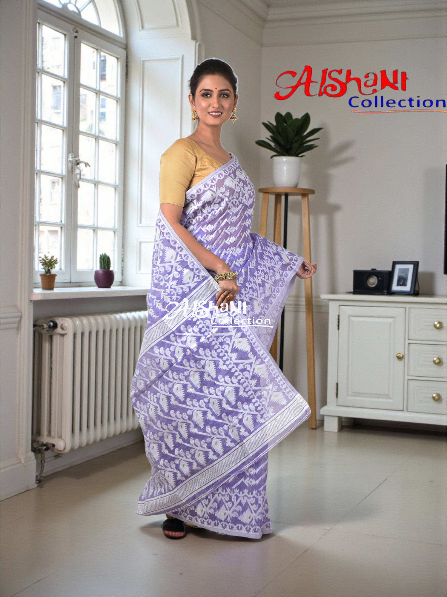 Woven Cotton Silk Dhakai Jamdani Saree Without Blouse Piece | Thread Work Karat Motif | Lightweight Traditional Saree (Purple)