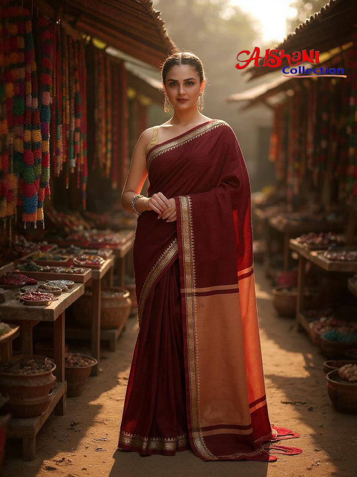 This **pure cotton handloom saree** features the signature **jacquard woven border** and classic **Khandi patterns**, known for their lightweight texture and refined aesthetics. The breathable fabric is ideal for all-day wear, making it perfect for festive occasions, office attire, or casual elegance.