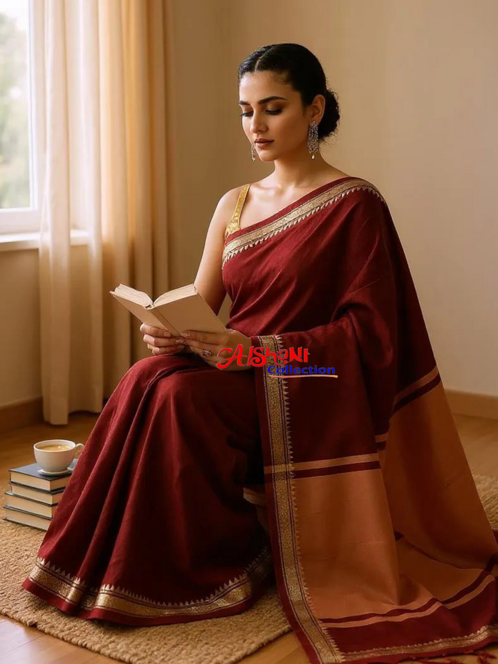 ### **Narayanpet Jacquard Border Khandi Cotton Handloom Saree with Blouse Piece – Aishani Collection**