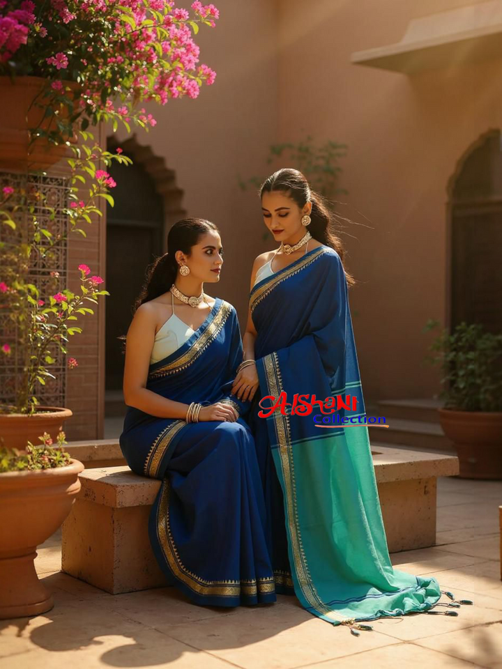 This **pure cotton handloom saree** features the signature **jacquard woven border** and classic **Khandi patterns**, known for their lightweight texture and refined aesthetics. The breathable fabric is ideal for all-day wear, making it perfect for festive occasions, office attire, or casual elegance.